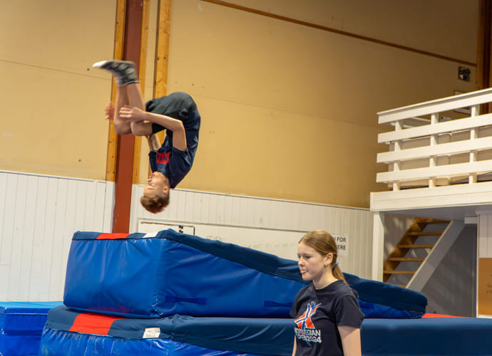 Det spiller ingen rolle om du har turnerfaring fra før – vi tilpasser øvelser og trening slik at alle elevene får utvikle seg ut i fra sitt nivå.